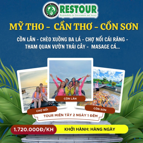 Sáng 07h00 – 07h15: Xe và HDV đón Quý khách tại điểm hẹn khu vực quận 1 – Hồ Chí Minh khởi hành đi Tiền Giang, bắt đầu hành trình DU LỊCH MIỀN TÂY 2 NGÀY. Đến thành phố Mỹ Tho Quý khách di chuyển tới bên Tàu 30/04 Quý khách xuống Tàu Du lịch Sông Tiền, Quý khách trải nghiệm cảm giác mênh mông của dòng Tiền Giang, ngắm cảnh bốn CÙ LAO LONG, LÂN, QUY, PHỤNG. Thuyền chạy dọc theo bè cá nổi để du khách tìm hiểu cách nuôi cá của người dân địa phương và ngắm nhìn cầu Rạch Miễu.